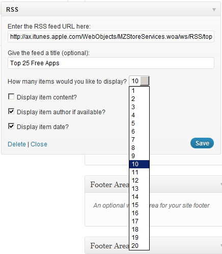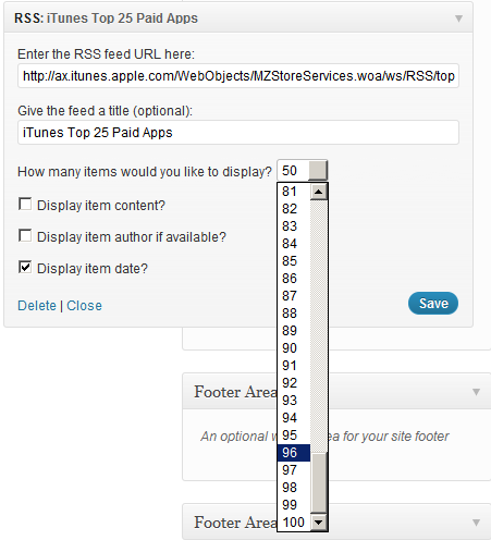 By default, WordPress allows only the maximum of 20 items in the RSS widget. In many cases, we need more than 20 items, like “Top 25 Free Apps” or “Top 30 Songs in 2011.”