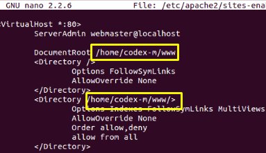 It is highly recommended to use your Ubuntu home directory (.e.g /home/codex-m/www) as your document root so that you can easily read and write files.