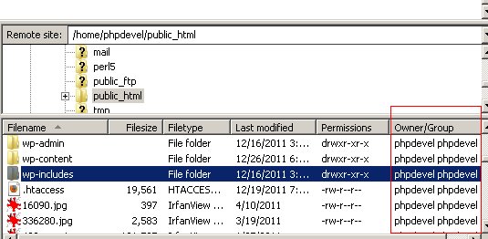 In the above example, the username assigned by the hosting company is “phpdevel” and the WordPress directory is owned by this username also. This is correct. The group can be owned also by you or another party but it’s the owner that is important. If the owner is not the same, you need to contact your hosting company.